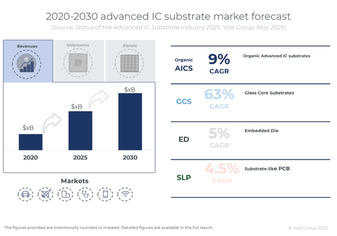 https://www.yolegroup.com/press-release/pushed-by-glass-core-and-high-end-ics-substrates-for-ai-the-advanced-ic-substrate-market-reaches-31-billion-by-2030/